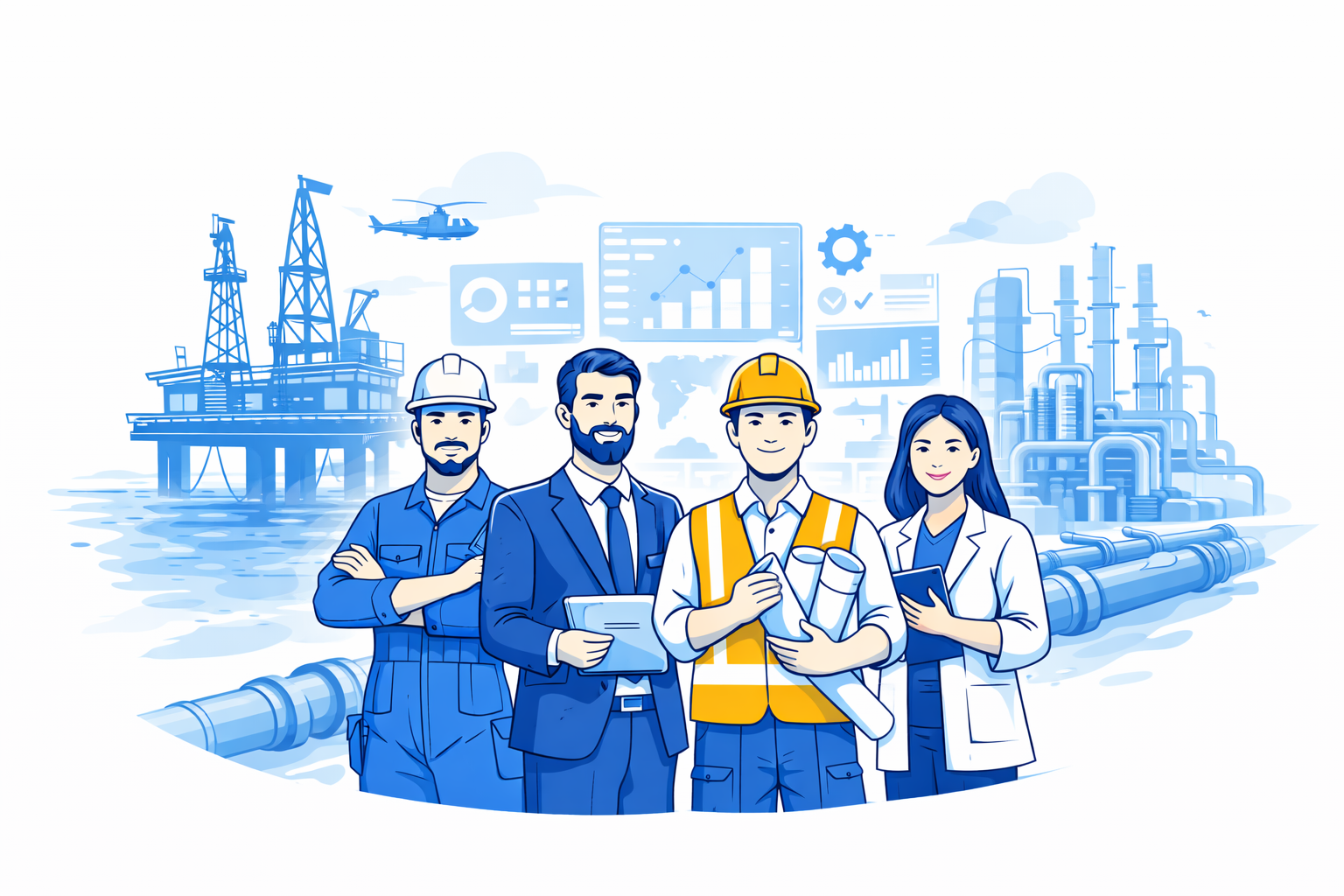 At Kemiserve, our strength lies in the experience, vision, and dedication of the people behind our solutions. We are a multidisciplinary team of petroleum engineers, chemists, software developers, and industry specialists committed to transforming upstream oil & gas operations through science-driven engineering and intelligent digital solutions.